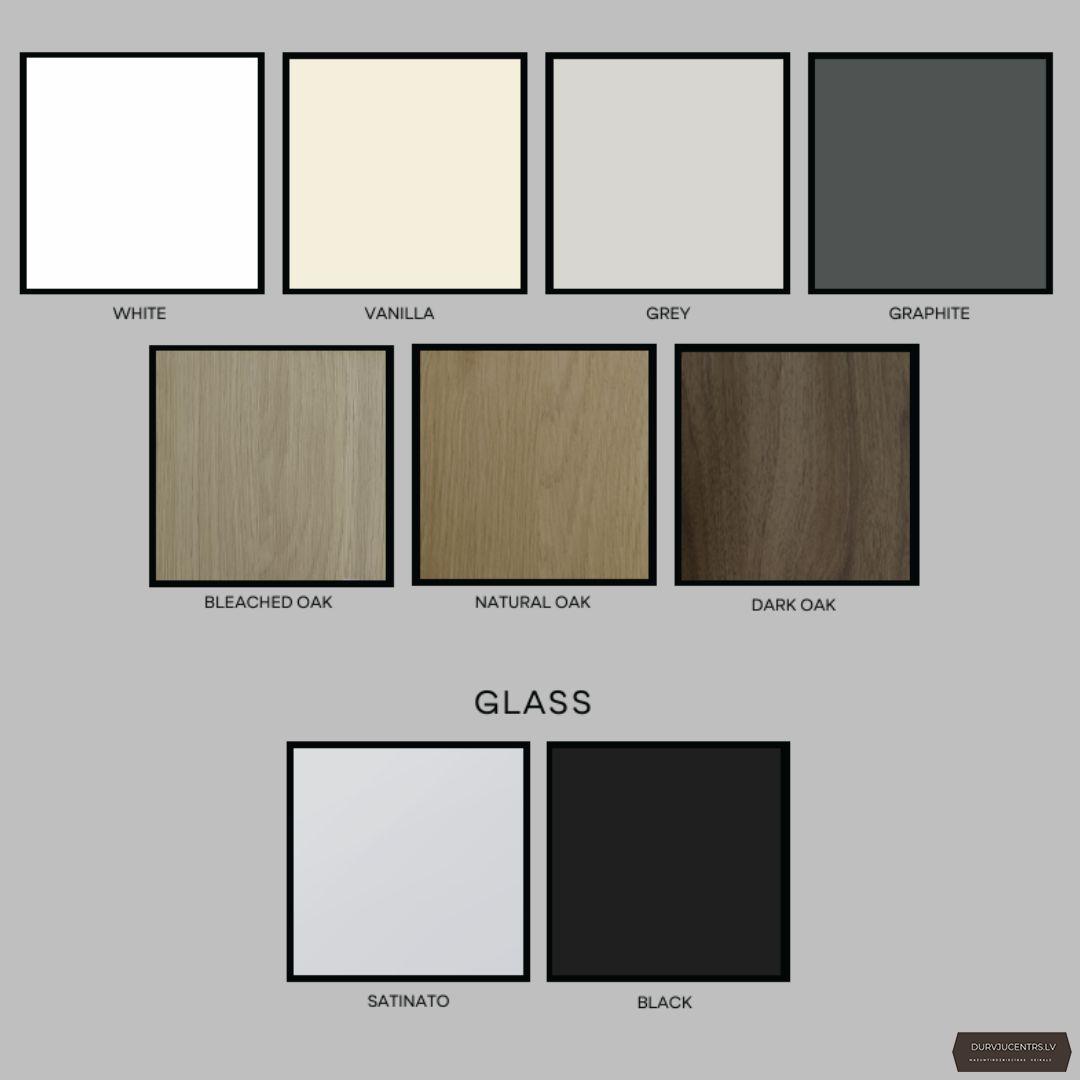 Cenā iekļauta standarta komplektācija, durvju vērtne, MDF durvju kārba, 2014 tipa slēdzene un universālās eņģes.